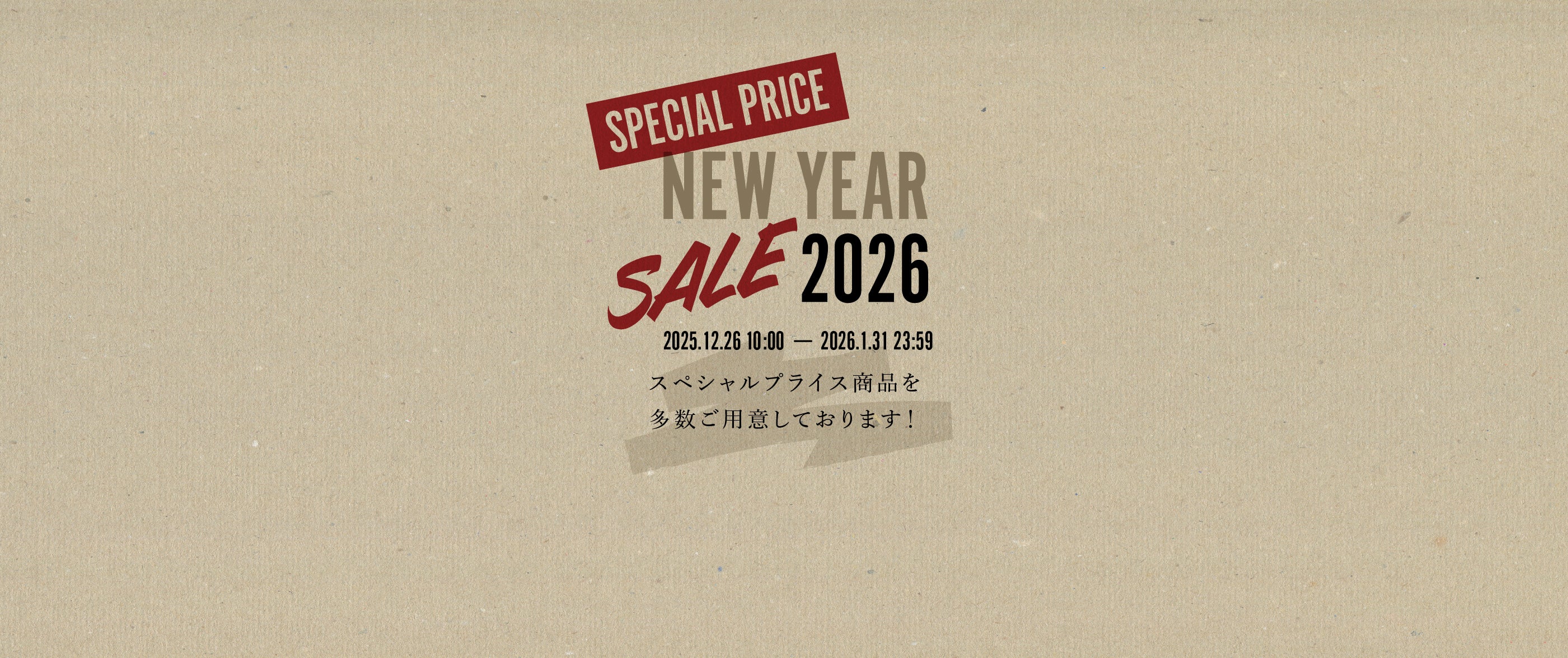 いつもPARTS & SUPPLYをご利用いただきありがとうございます。日頃のご愛顧に感謝いたしまして、NEW YEAR SALEを開催いたします! 今回は2つの企画を実施いたしますので、お見逃しなく! ① 在庫商品10%OFF SALE 概要: 税込22,000円以上ご購入で、ご注文合計金額から10%OFFになります! 期間: 2025年12月26日(金) 10:00 ~ 2026年1月5日(月) 23:59まで 割引条件: ・スペシャルプライス商品、GOOD PRICE商品も対象となります。 ・対象商品は在庫商品に限ります。受注生産品や取り寄せ商品は対象外となります。 ② スペシャルプライス SALE 概要: お買い得なスペシャルプライス商品を多数ご用意いたします! 期間: 2025年12月26日(金) 10:00 ~...