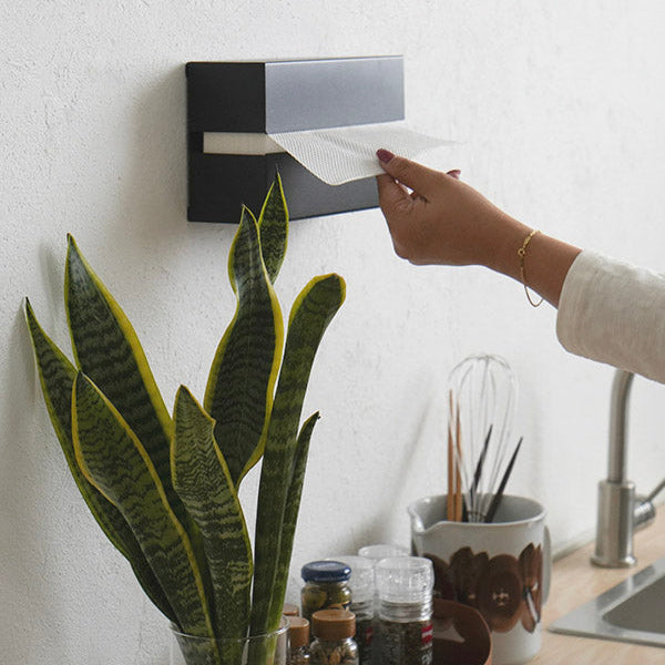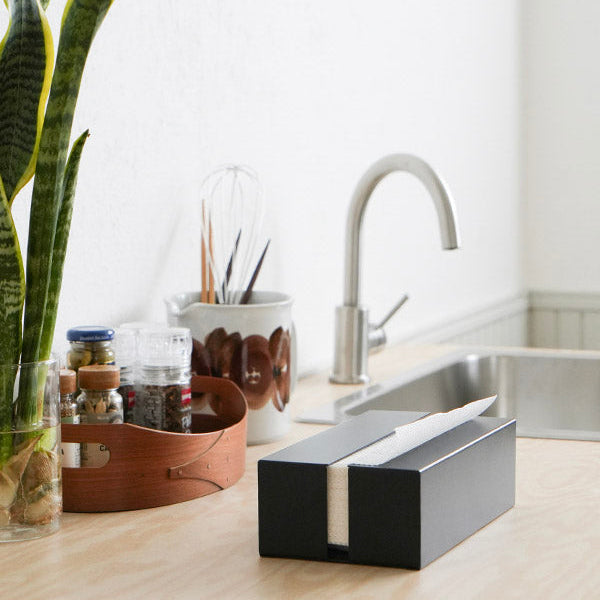 「ペーパータオルホルダー ブラック」はざらりとした質感がシンプルかつ上質な雰囲気。