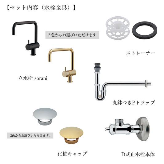 Sold out * Faucet fittings are made to orderTerrazzo x Teak Hand Wash Basin Wood stripe400 BK (6-piece set with faucet)