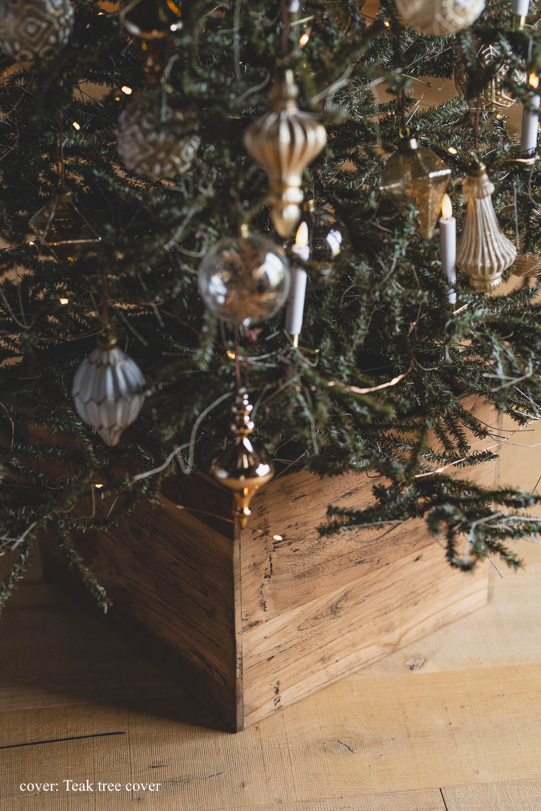 - ダークブラウンのオイル仕上げを施したマホガニー材を使用。ヴィンテージ家具を思わせるクラシックなデザインで、ツリーの足元に重厚感と品格を添えます。