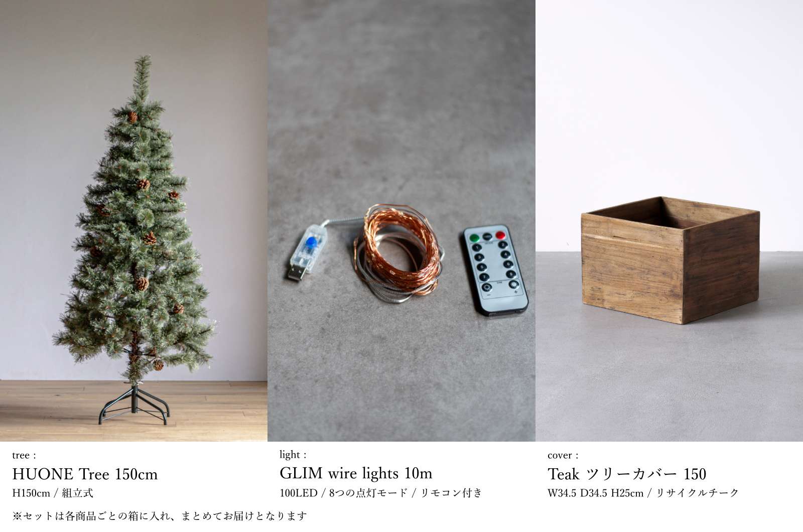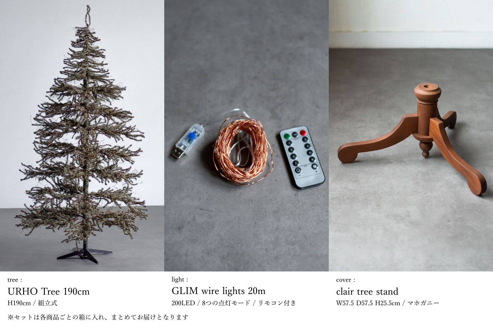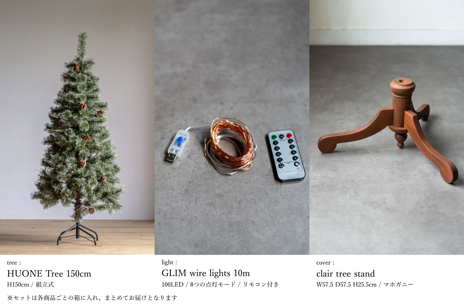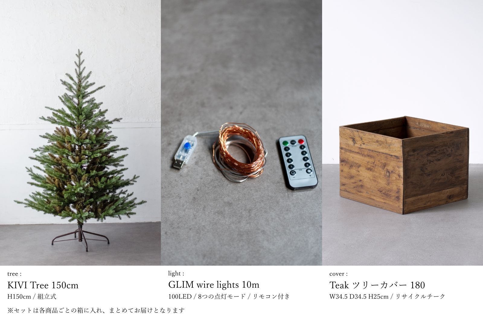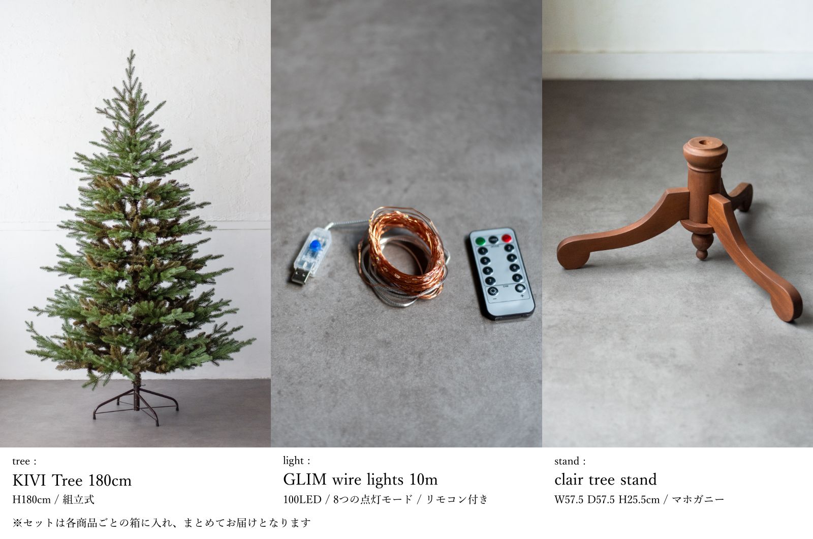新作「KIVI(キヴィ)」をはじめとするクリスマスツリー・ツリーカバー(またはツリースタンド)・LEDワイヤーライトの3点セット。単品で揃えるよりもお得に、手軽にクリスマスの準備が整います◎