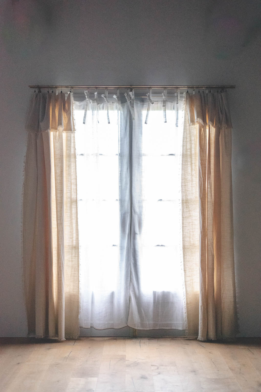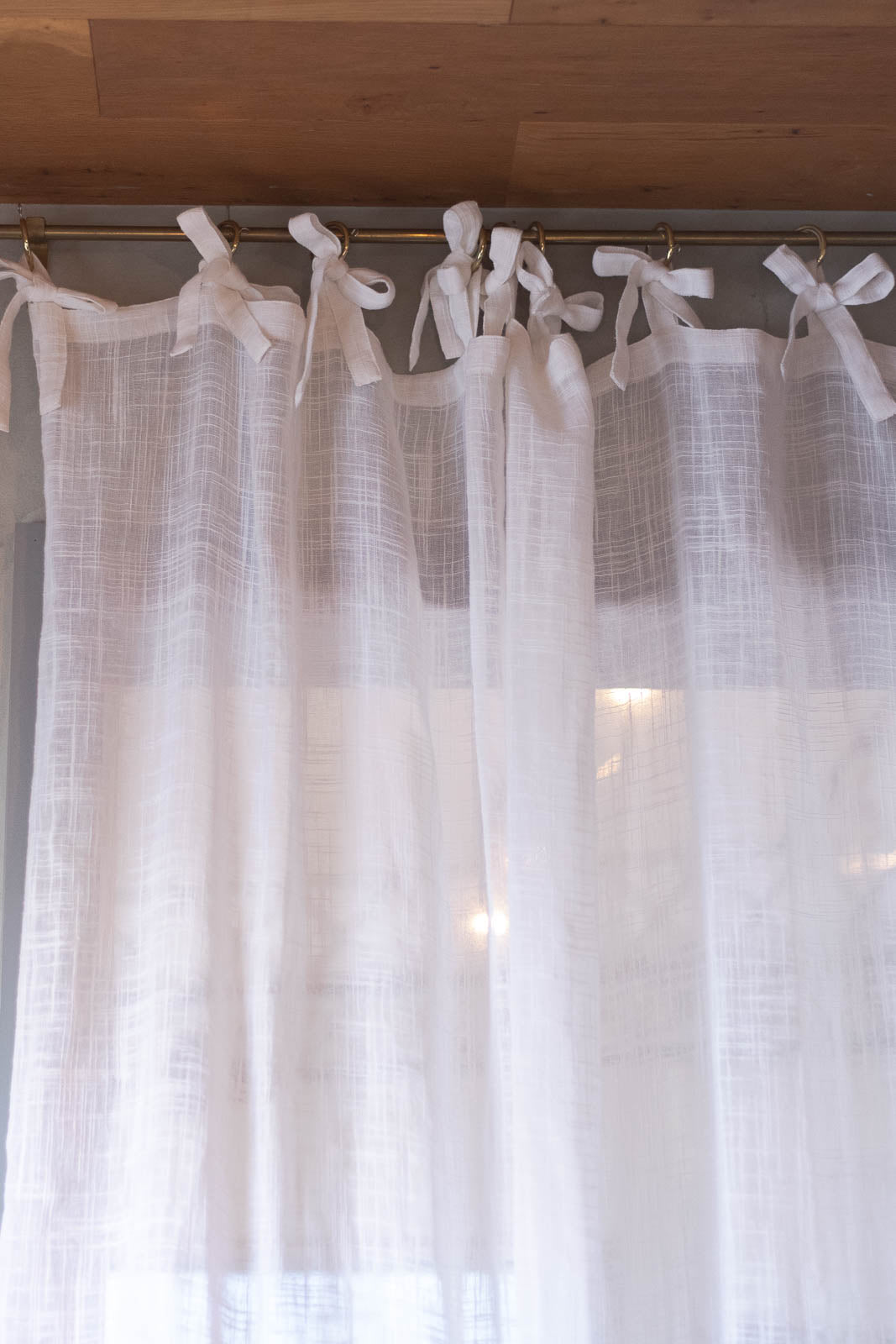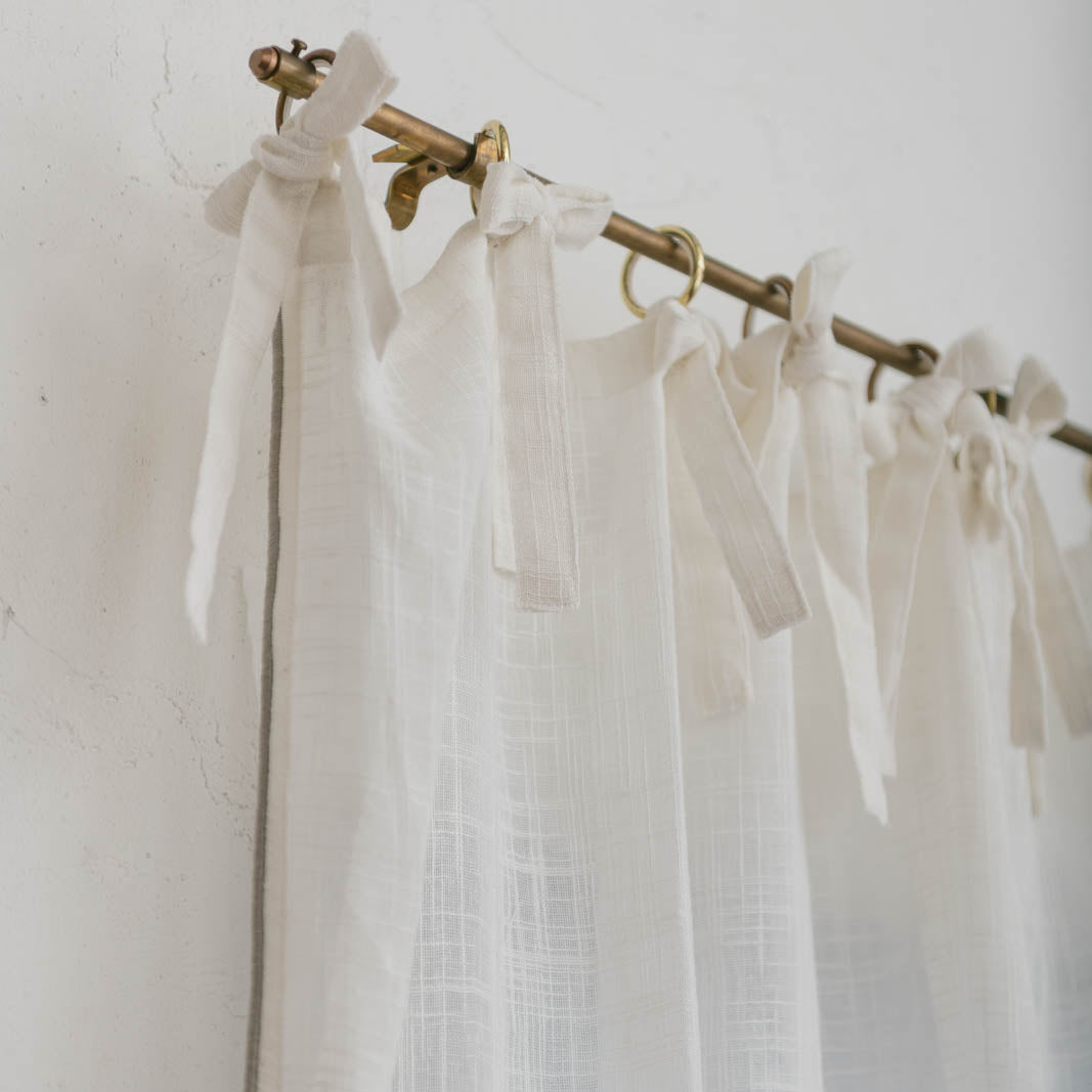 糸の自然な風合いが魅力の、スラブ生地で仕立てたリボンカーテン