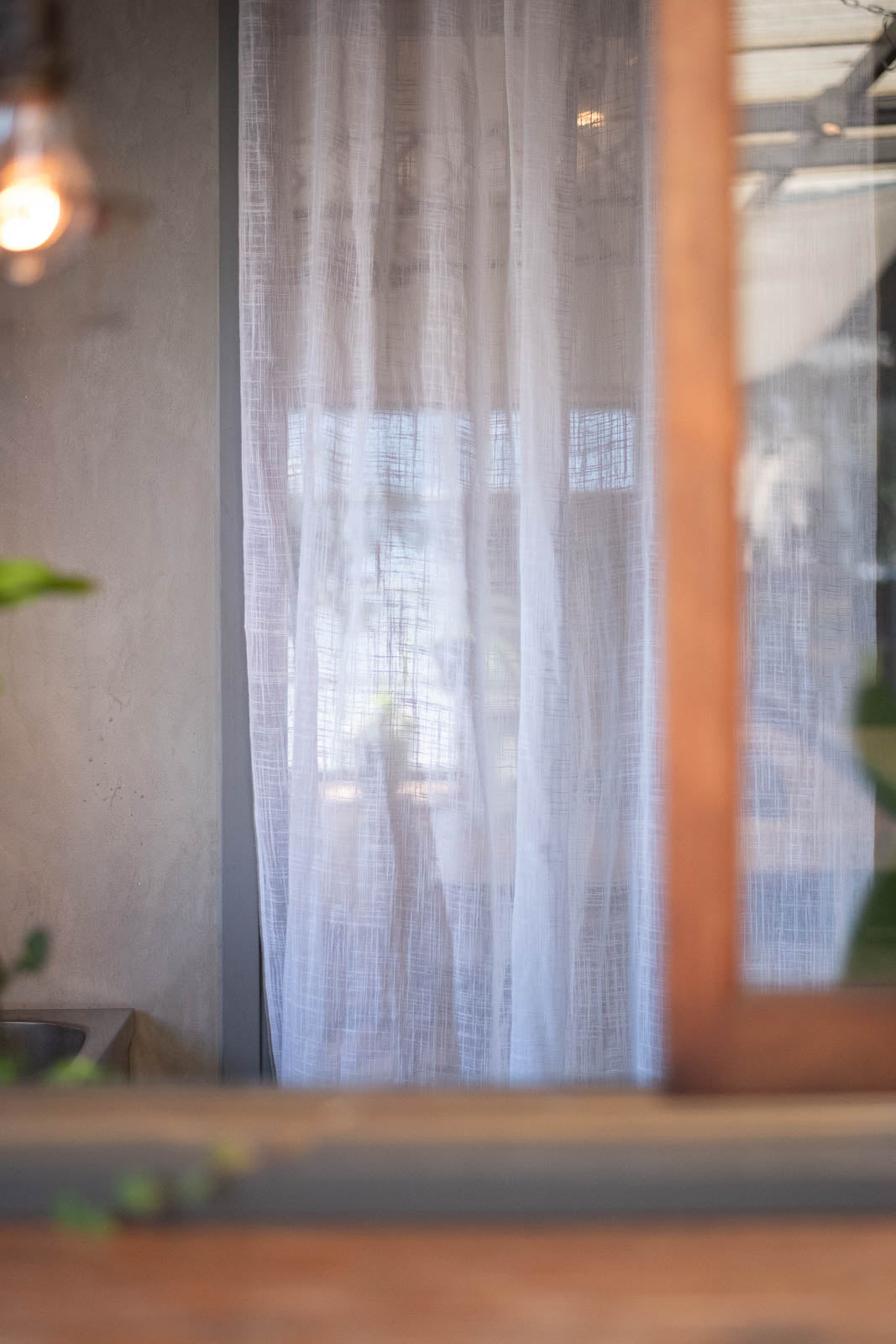 程よい透け感で、さりげない目隠しにも。重たさは感じさせず、手を近づければうっすらと見えるほどの、やさしいニュアンスを残しています。