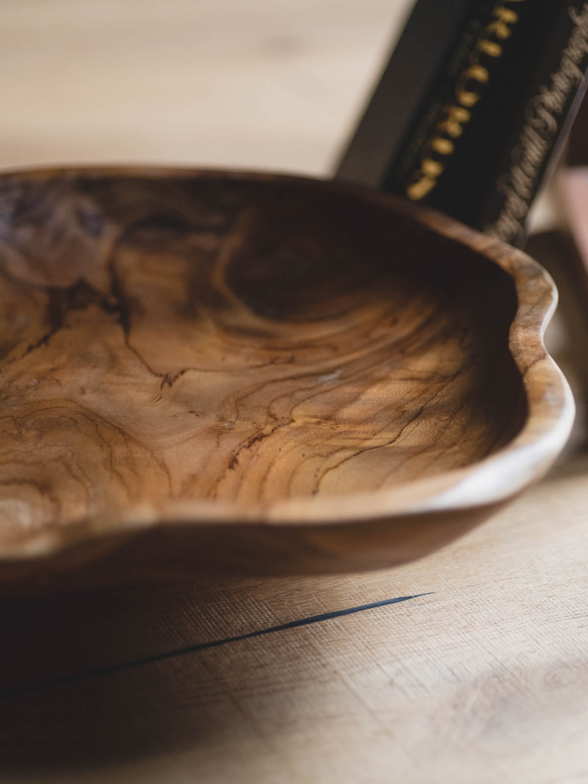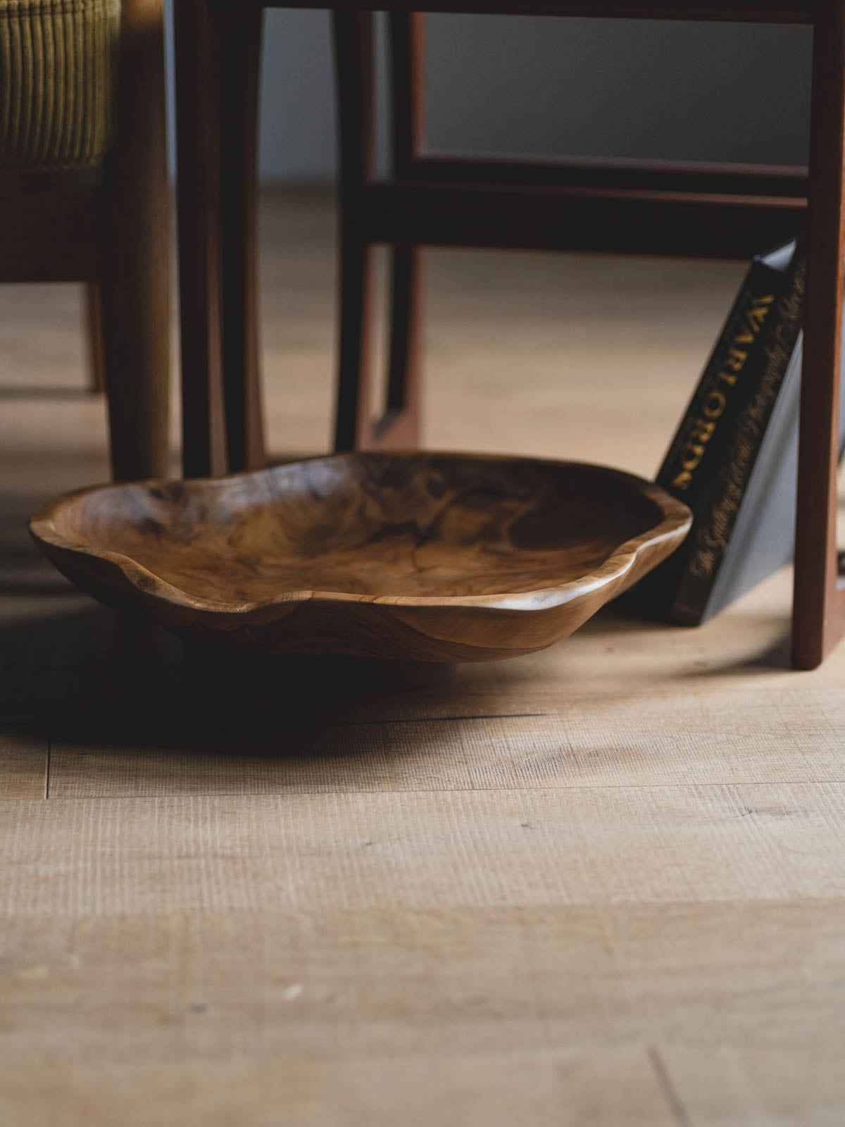 無垢チークの抜群な存在感を生かした脚付きボウル