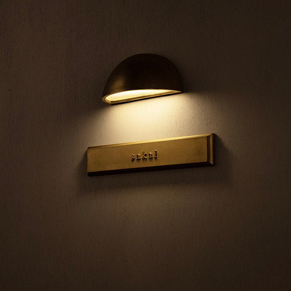 ネームプレート上部に取付けるために設計された真鍮鋳物製のミニマルなライトシリーズ。