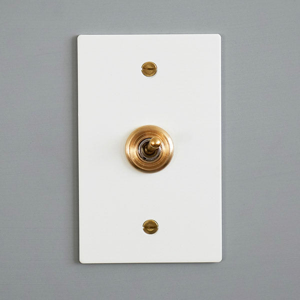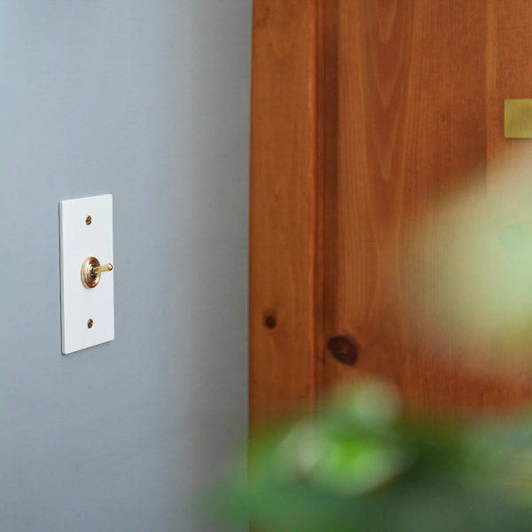 スチール(鉄)プレートとトグルスイッチを組み合わせた、シンプルかつ趣のあるデザインスイッチ