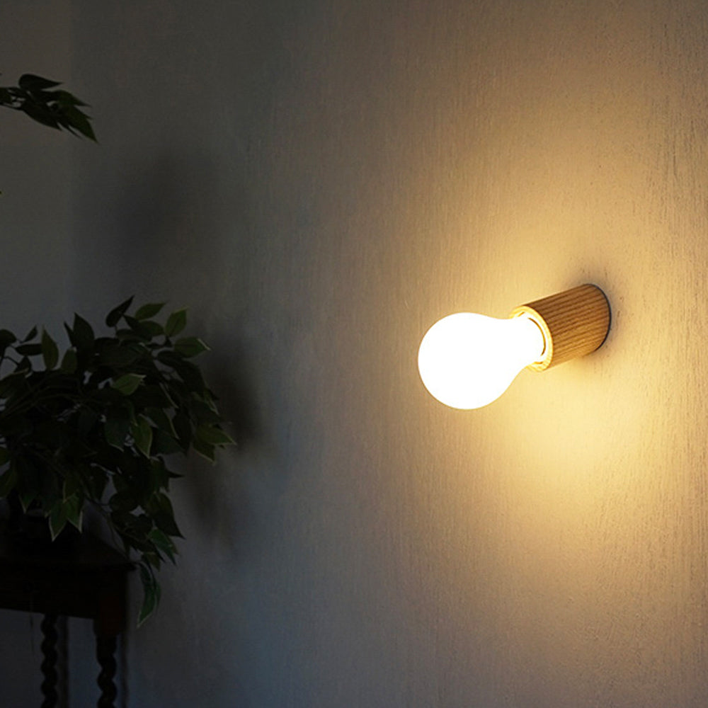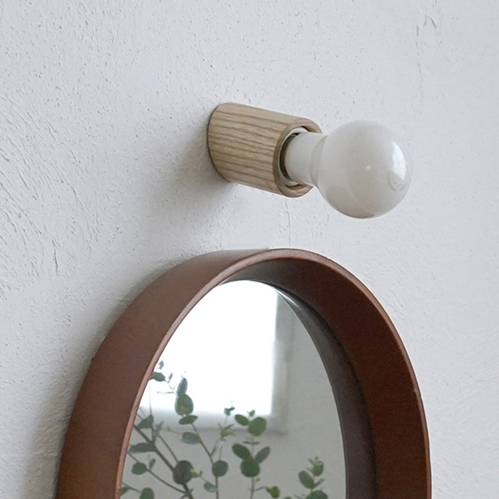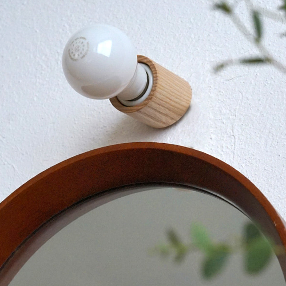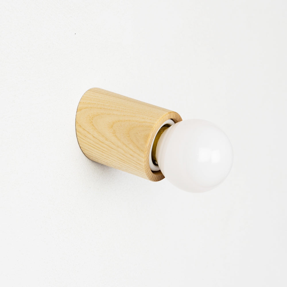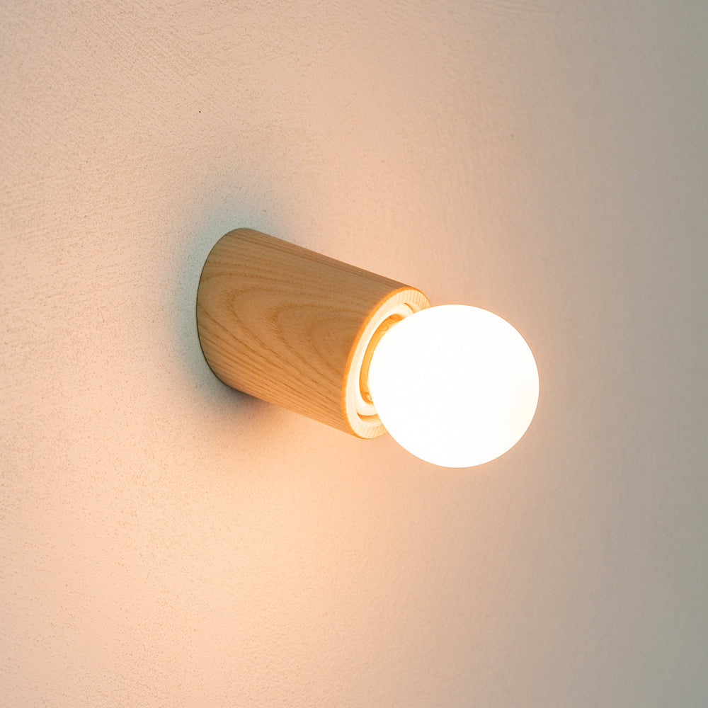 「ウッドレセップカバー スロープ natural」は、斜めにカットされた円筒形がコンパクトなフォルム。アッシュ材の自然な風合いを楽しめるクリア塗装で仕上げました。シンプルな白い壁からコンクリートなどのモダンな壁材までさまざまな場所に馴染んでインテリアと調和します。玄関・洗面所・お手洗いなどの壁に設置して顔周りや手元を照らしたり、廊下や洗面所の天井に設置して全体を照らすこともできます。