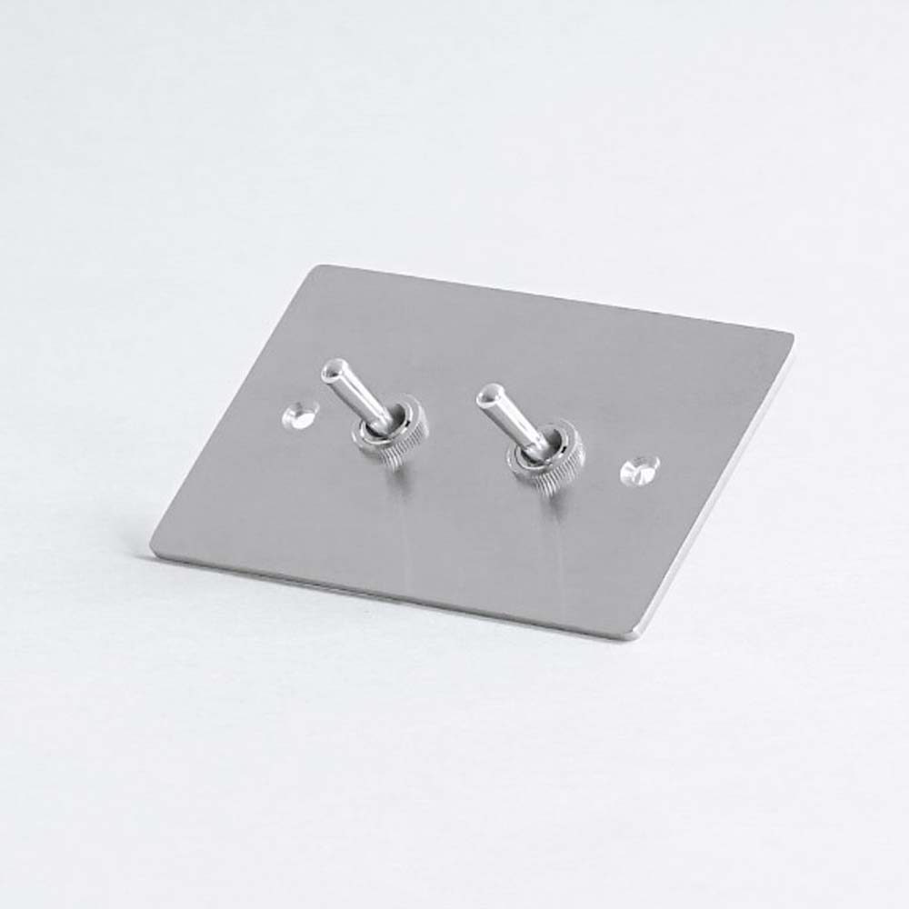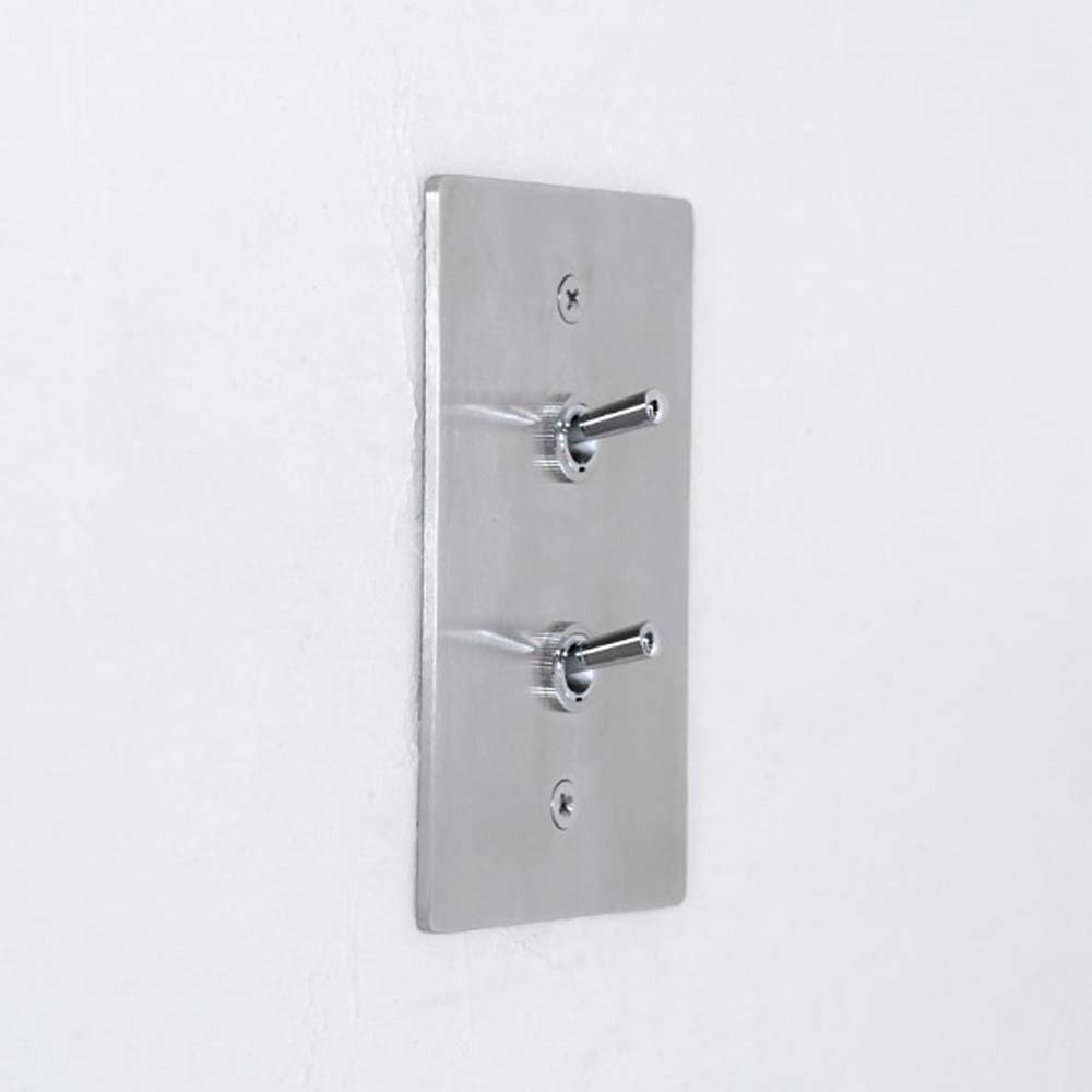 「ステンレスプレート2スイッチ」は、スイッチの数が2つのタイプ。デザインのこだわりと、利便性の良さが特徴です。玄関廊下・洗面所・お手洗いなど、2つの照明や換気扇等を操作する場所にお使いください。
