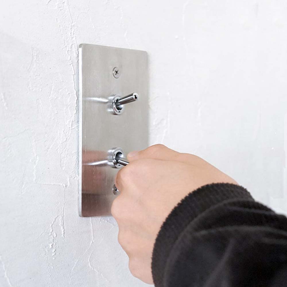 - 電動工具などを使用して取り付けられた場合、取付ビスの溝を痛める可能性がある為、ご注意下さい。尚、ビス単体、プレート単体、スイッチ単体での販売は行っておりません。商品取り付け時の破損等は保証対象外となりますので、必ず同封の説明書に従って取り付けを行って下さい。