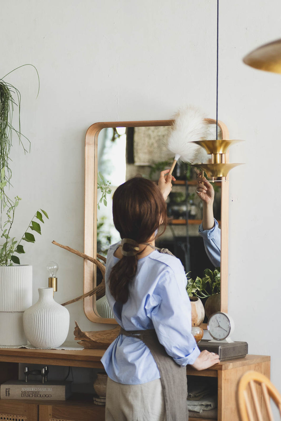 サイズは幅70cm、奥行き3cm、高さ90cmのバランスよいサイズ感で、縦でも横でも掛け置きできます。洗面やドレッサー、玄関先やリビングなどあらゆるシーンでおすすめです。窓に見立てて掛ければ鏡面が光をたっぷりと集めて拡散させ、空間を広く感じさせます。