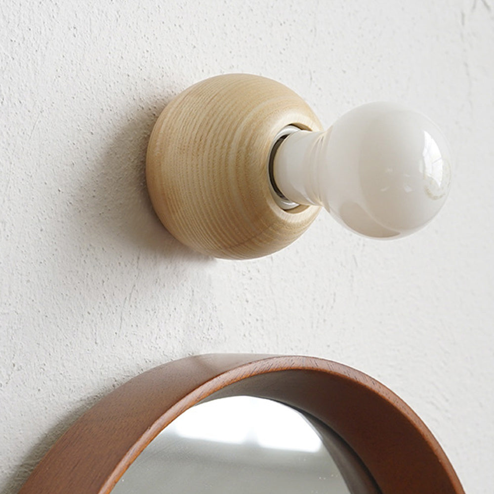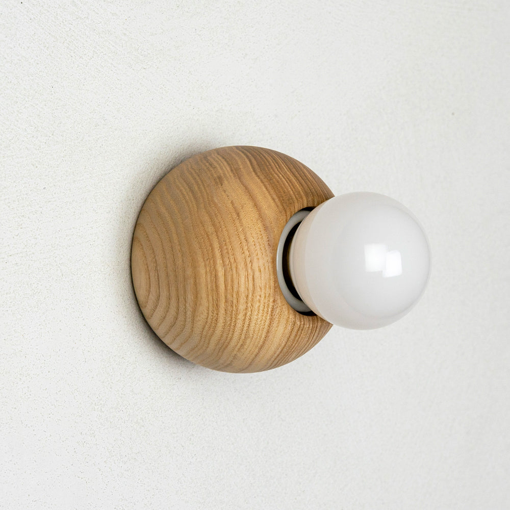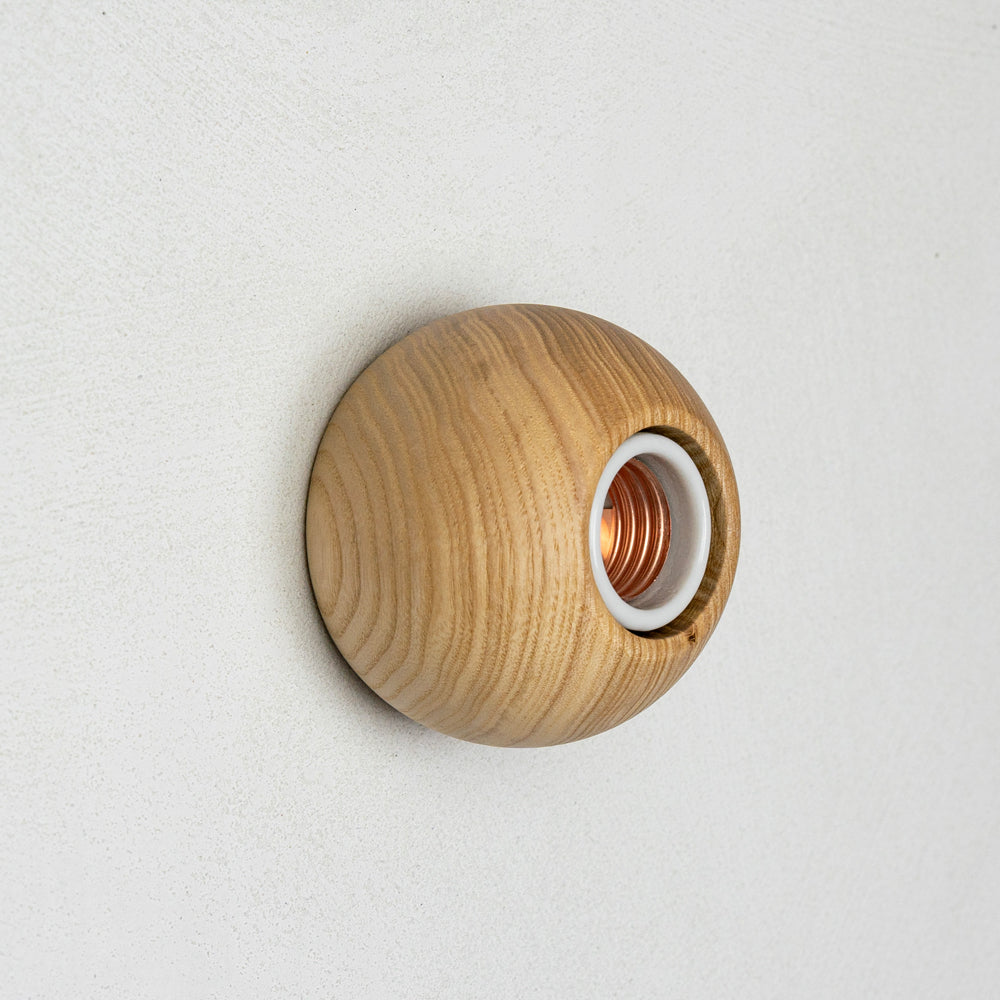 「ウッドレセップカバー ラウンド natural」は、ころんとした丸っこいフォルムが特徴的。アッシュ材の自然な風合いを楽しめるクリア塗装で仕上げました。シンプルな白い壁からコンクリートなどのモダンな壁材まで、さまざまな場所に馴染んでインテリアと調和します。玄関・洗面所・お手洗いなどの壁に設置して顔周りや手元を照らしたり、廊下や洗面所の天井に設置して全体を照らすこともできます。