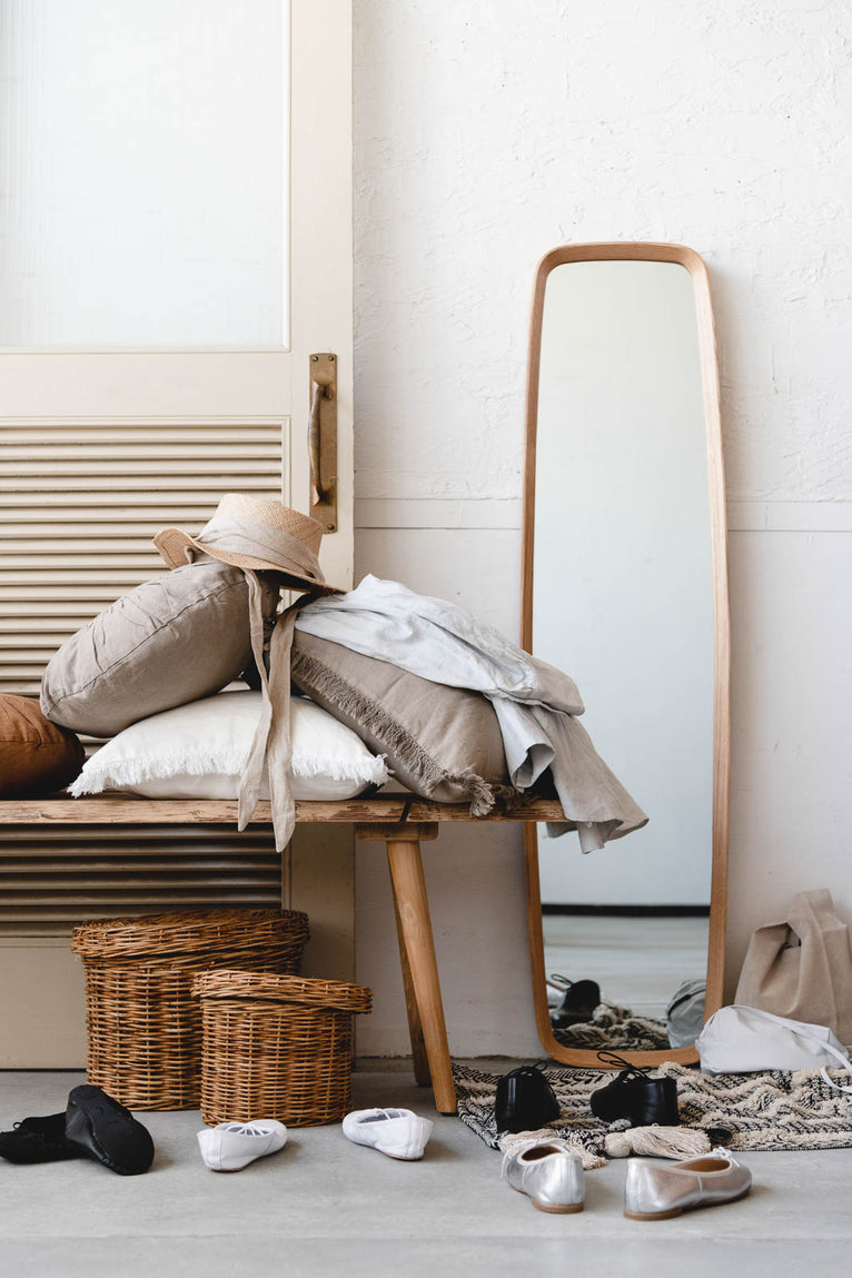 姿見鏡としても使える「Oak frame(オークフレーム)ミラー Long」は、優しいウッドの色合いと、少し膨らみのあるフォルムが印象的。奥行きのある細縁と組み合わさり、まるで窓のような佇まいが生まれます。繊細で愛らしいそのデザインは、お部屋にさりげない存在感を添えてくれます。