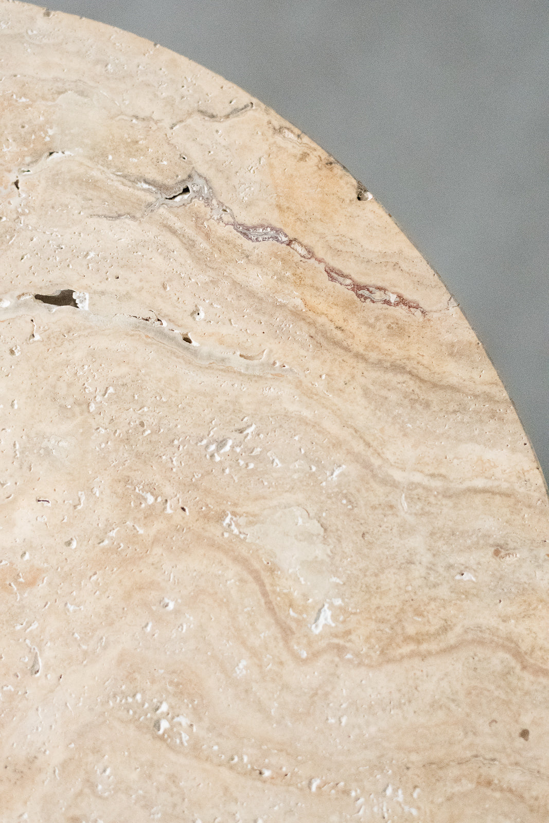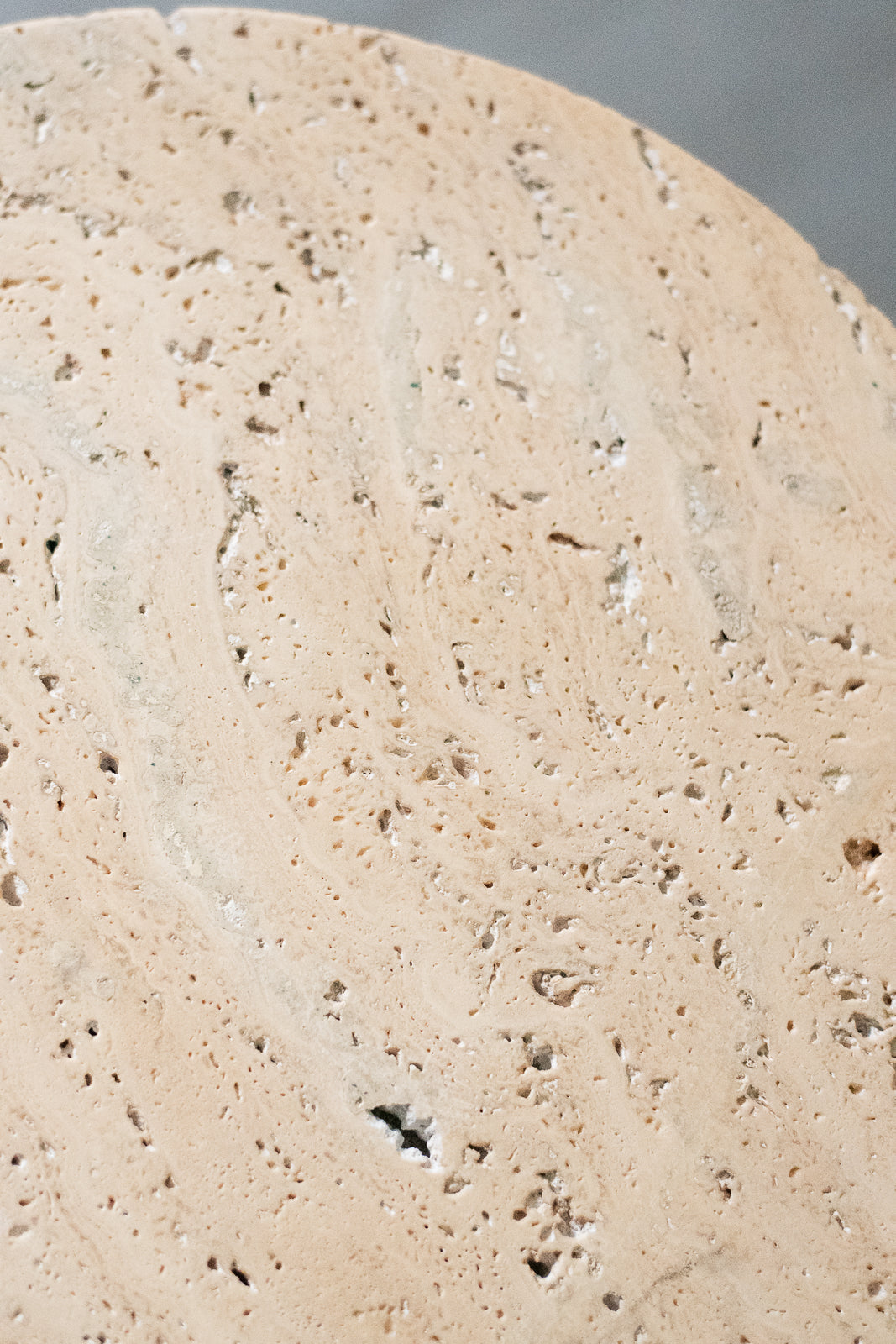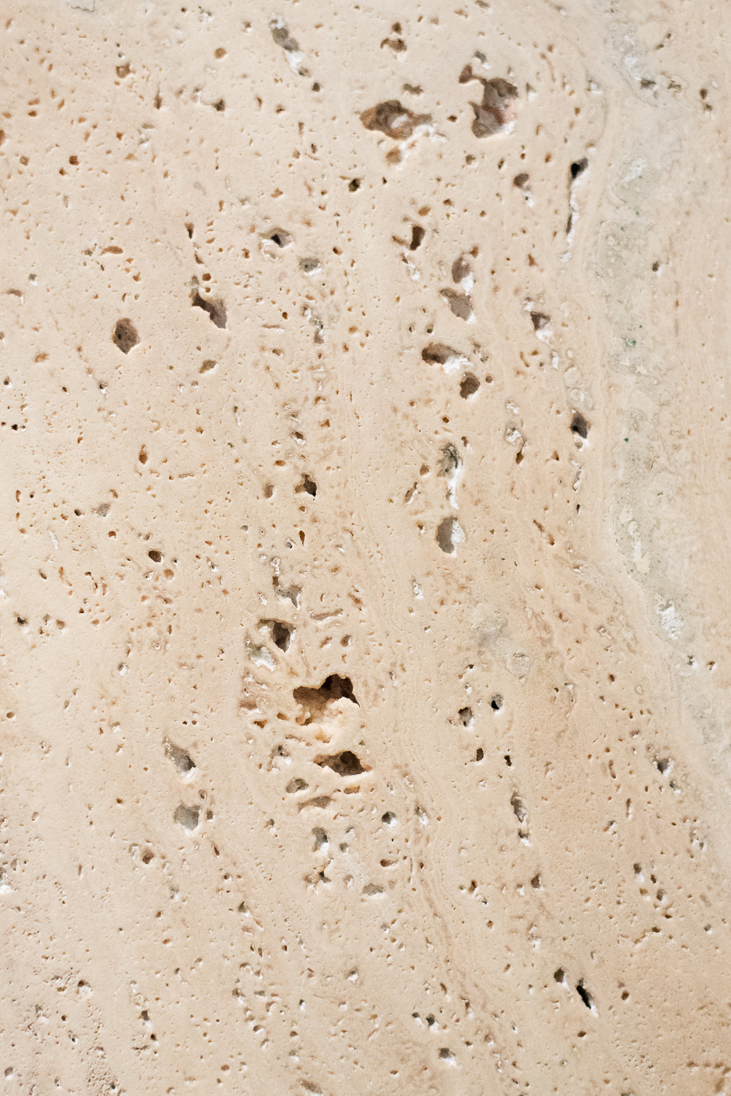 トラバーチンは、長い時間をかけて形成された石灰岩。地層のような縞模様や気泡の跡が、やわらかな表情を生み出します。