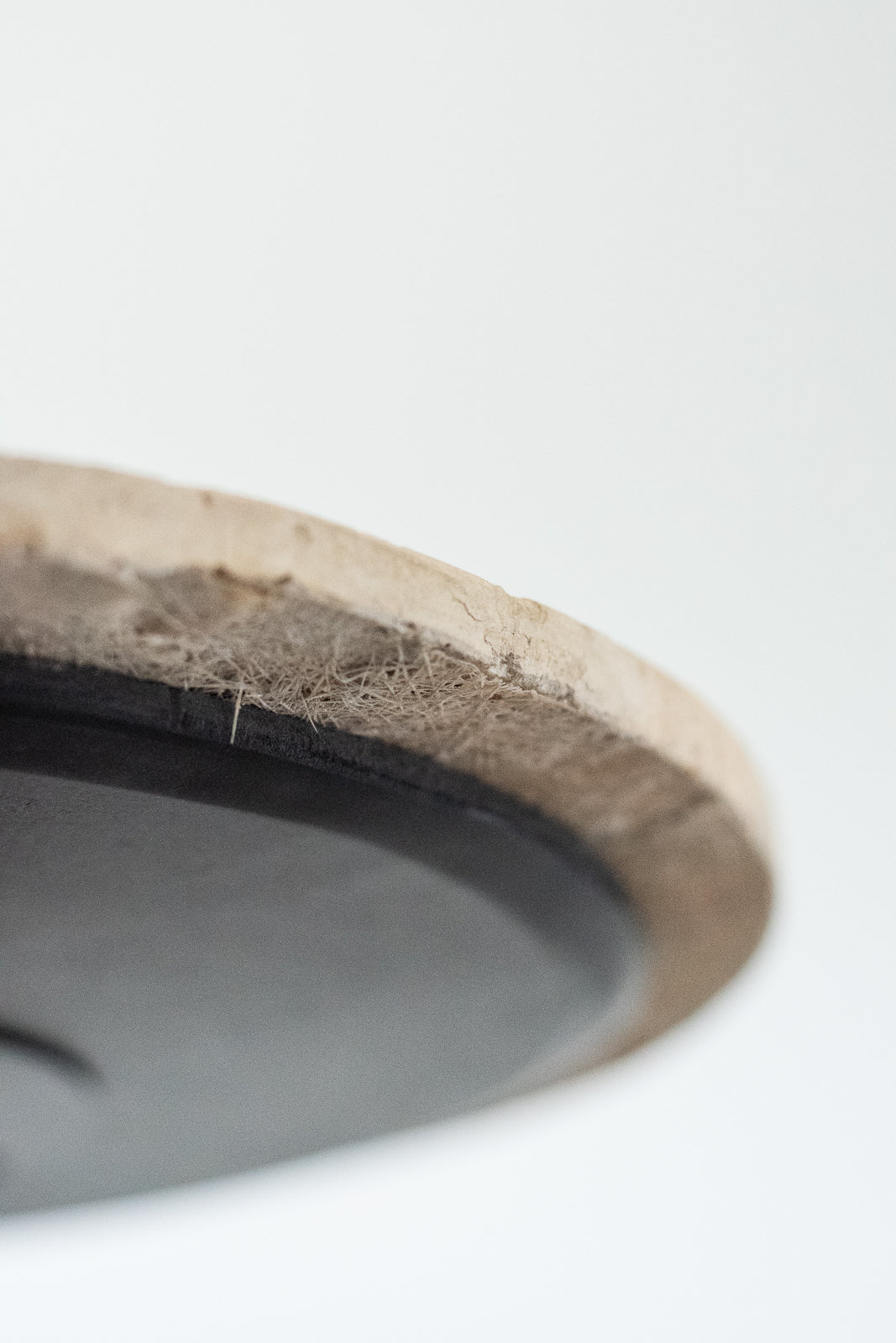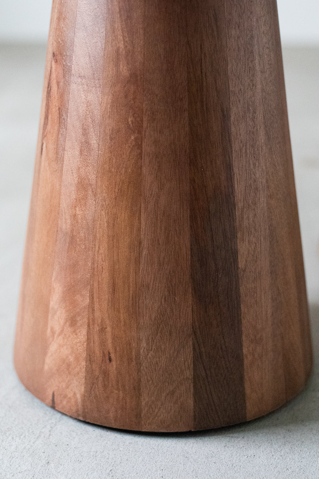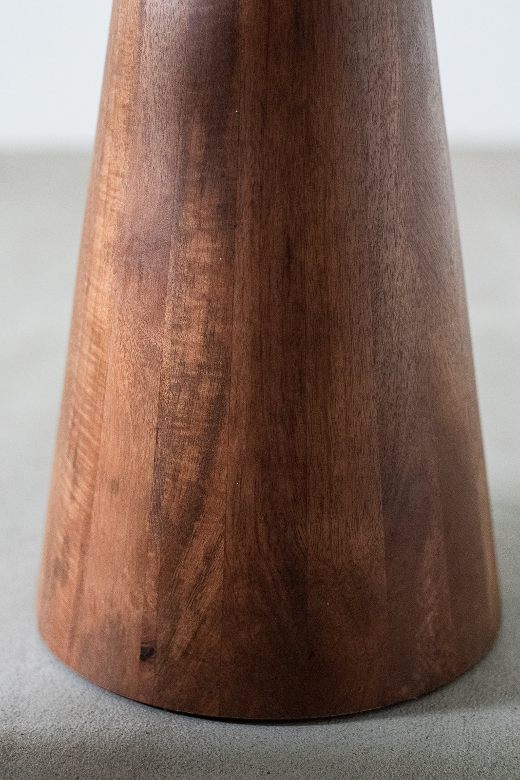 ベース部分は、先細りの美しいテーパードコーン型。オイル仕上げを施したマンゴーウッドが、やさしい艶と重厚感を放ち、素材とフォルムの対話が静かに息づきます。