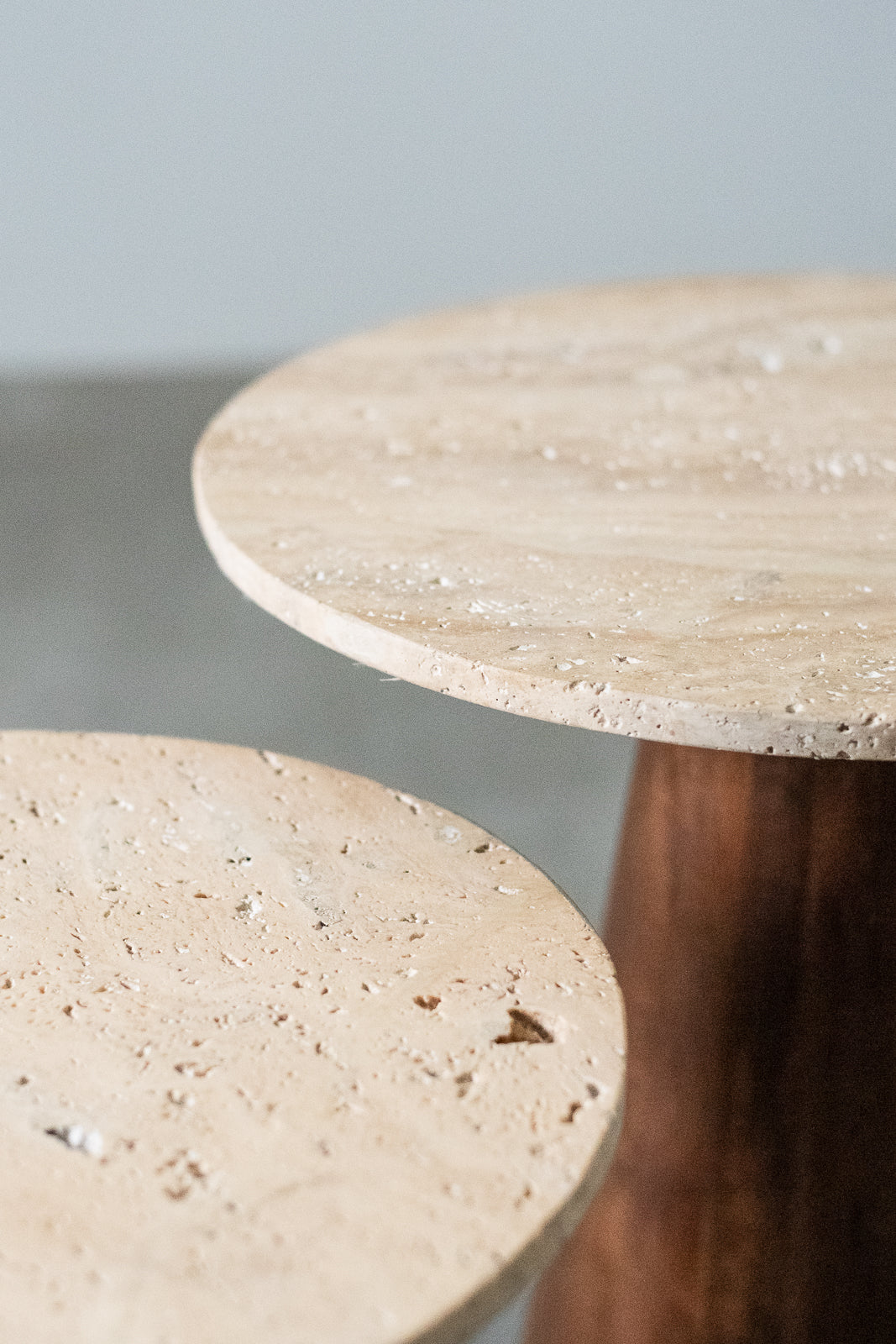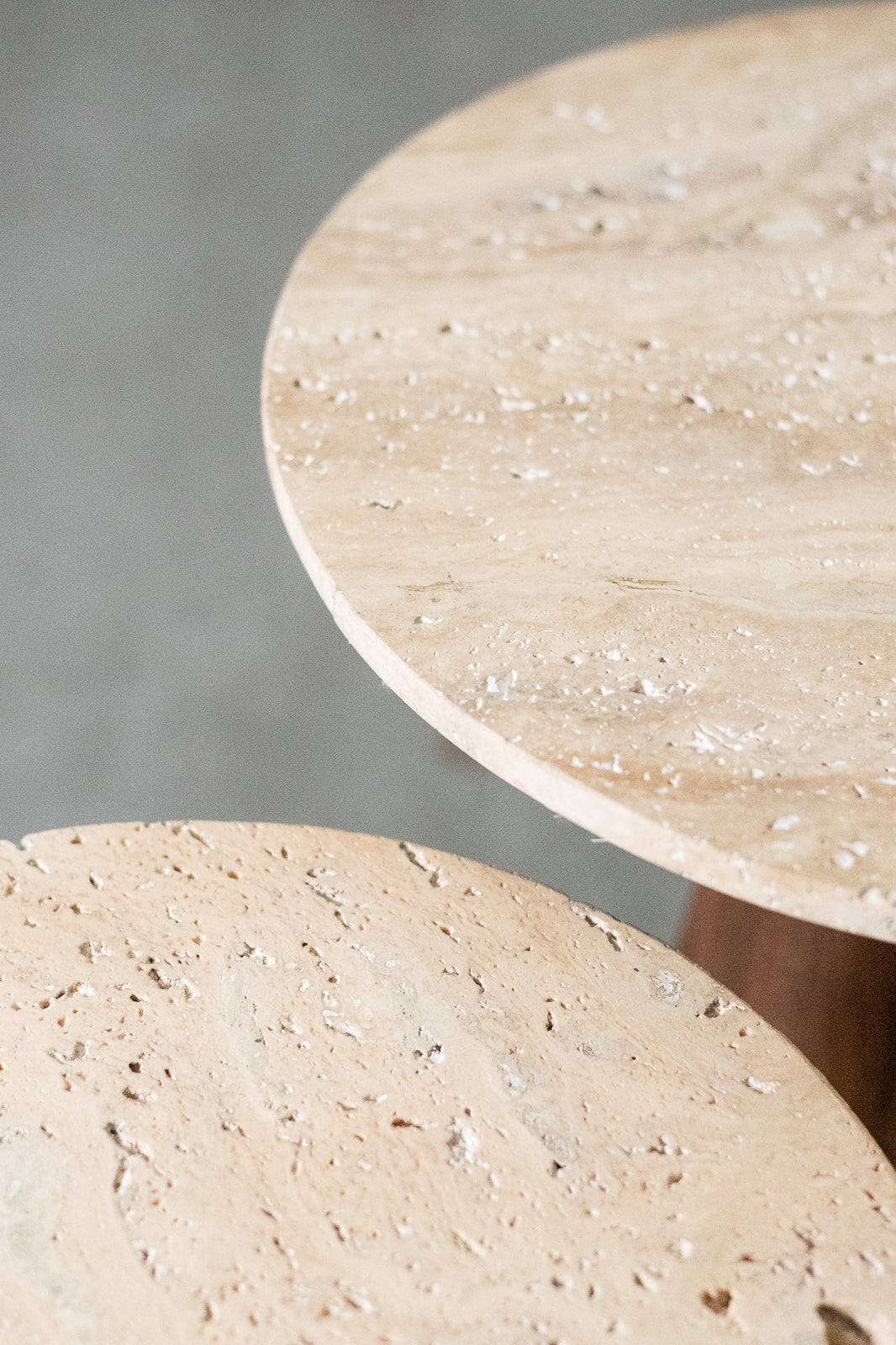 リビングの主役としてはもちろん、ベッドサイドやソファの横などコンパクトなスペースにも美しくフィット。1台をコーヒーテーブルに、もう1台をサイドテーブルとして使うなど、単体でも十分に機能しながら、空間全体に統一感をもたらします。
