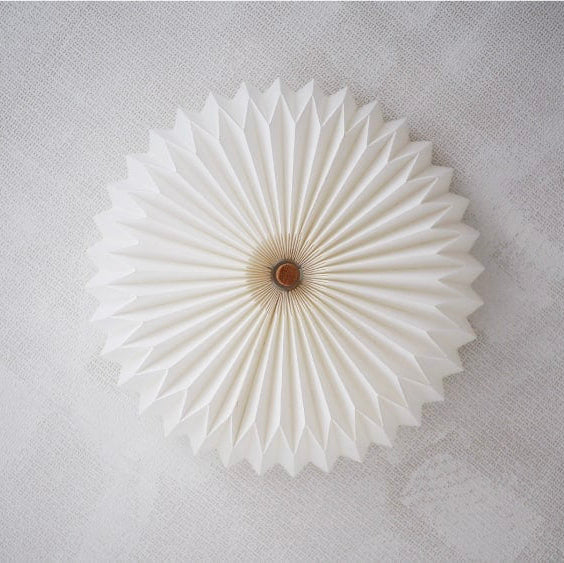 連続する細やかな折りが生み出す、華やかでありながら繊細なフォルム。その立体的な陰影がやさしく広がり、まるで障子越しの陽光のように穏やかな光で空間を包み込みます。