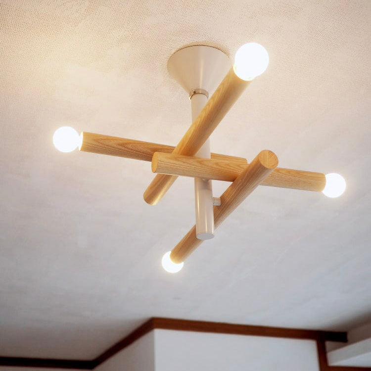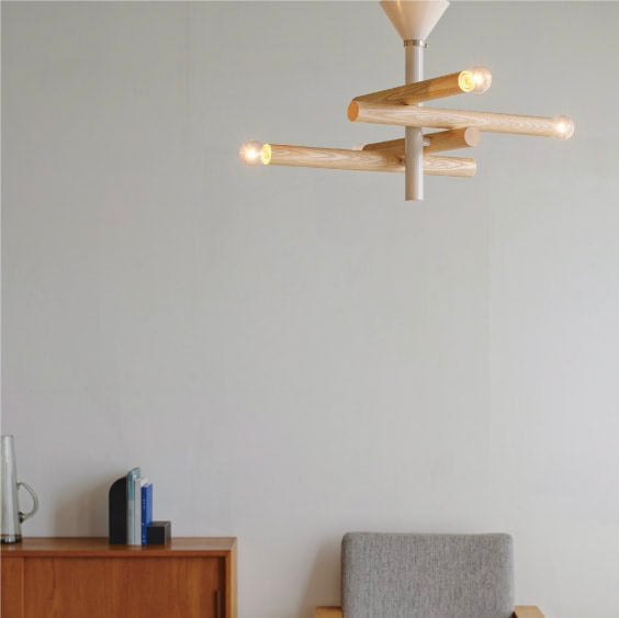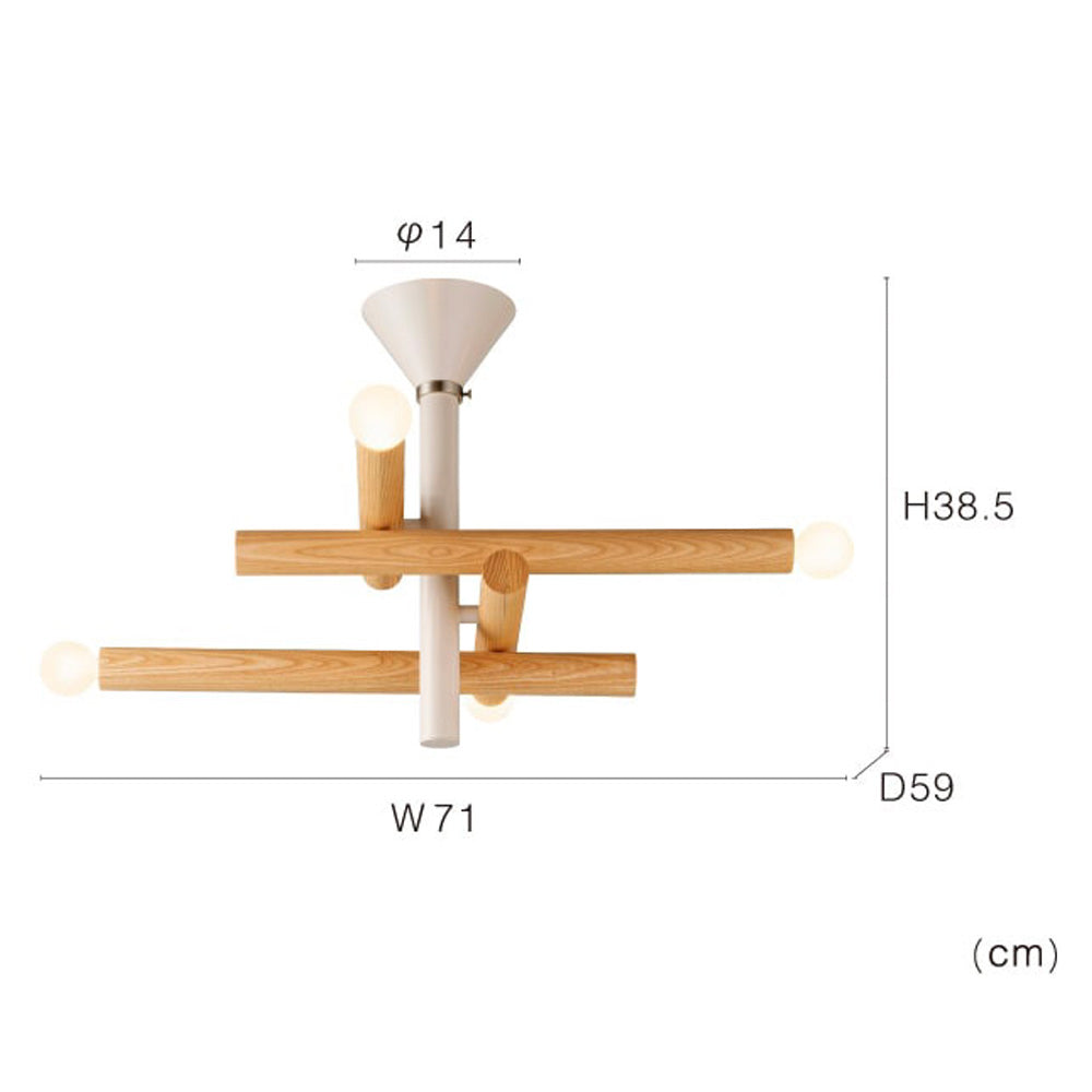 4本のアームを段違いに配置し、長短のバランスで自然な立体感を演出。たっぷりと木を使用したナチュラルな仕上がりが、あたたかみのある雰囲気を生み出します。
