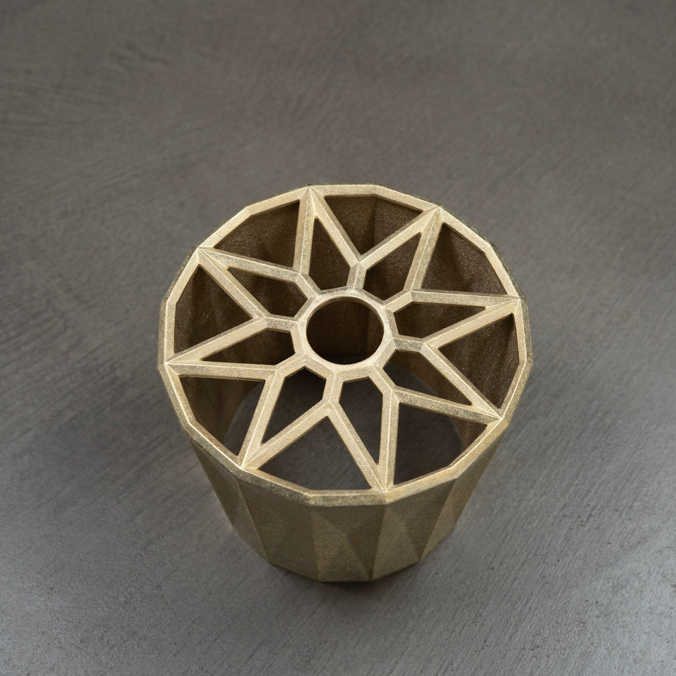 複雑に折りたたまれたような形のシェードはきらめいた光を上部・下部共にもたらします。