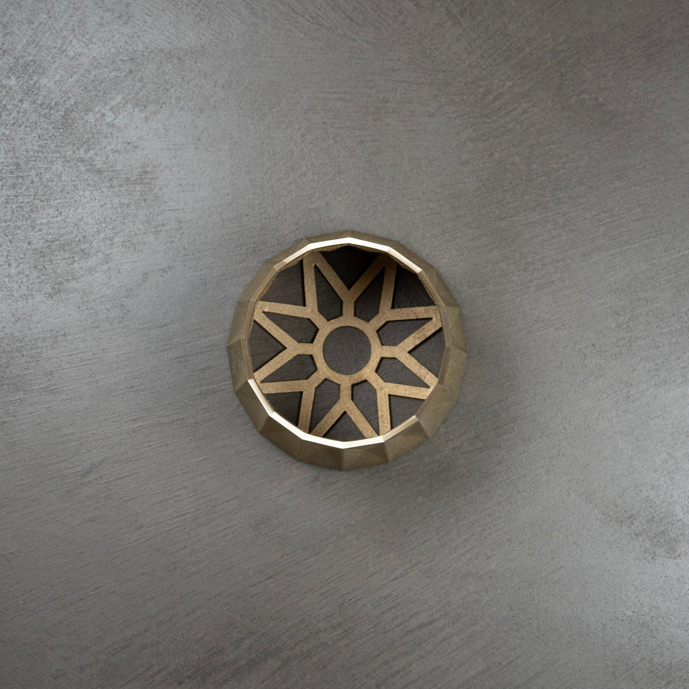 - 緑青(青緑色の錆の一種)が発生して気になる場合は、真鍮磨きクロスでやさしく磨いてください。薬品などで拭くと拭きムラの原因になりますのでお控えください。