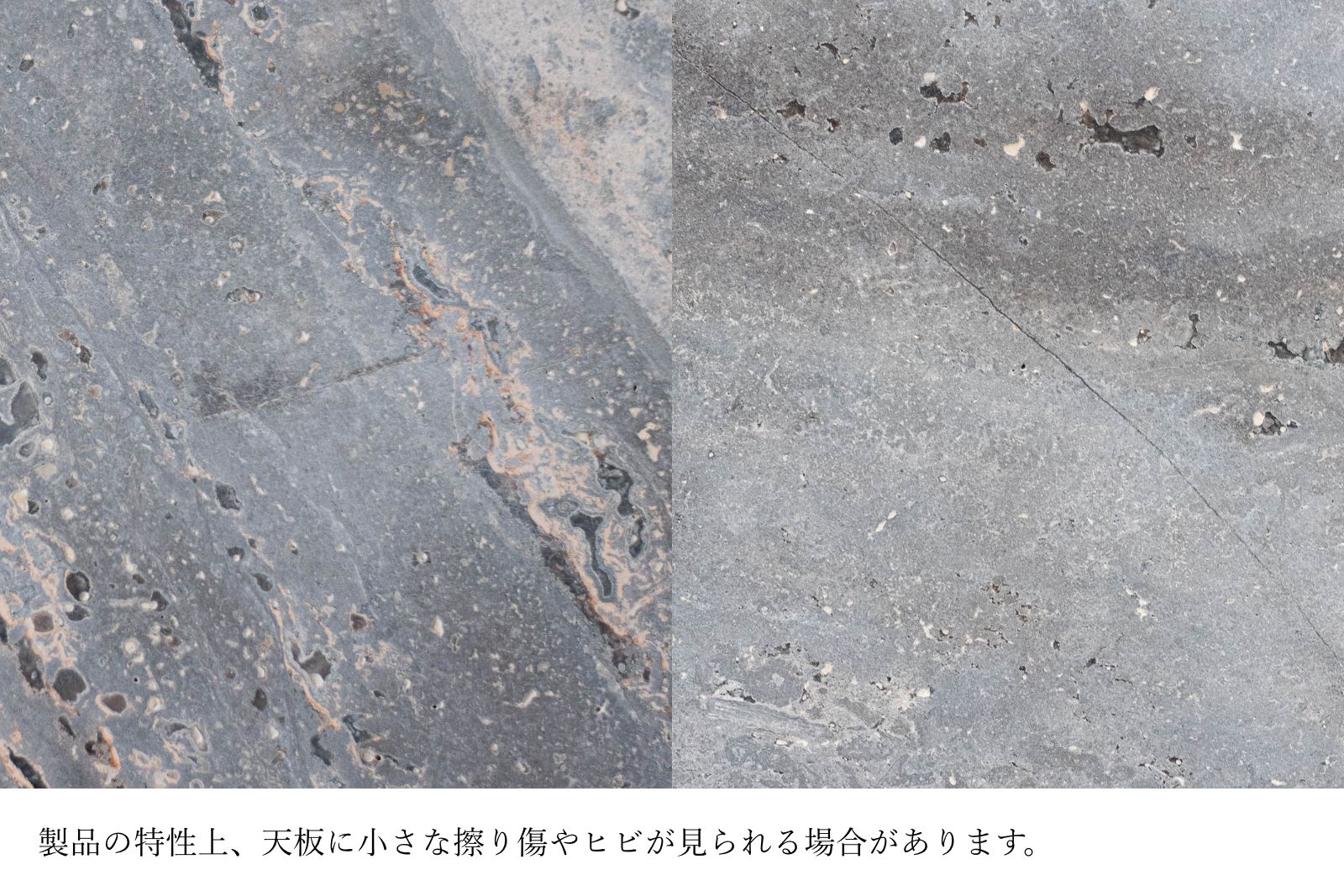 - 天然石の天板は、吸水性があるため水分や油分を含んだものを長時間置かないようご注意ください。必要に応じてコースターやトレイのご使用をおすすめいたします。