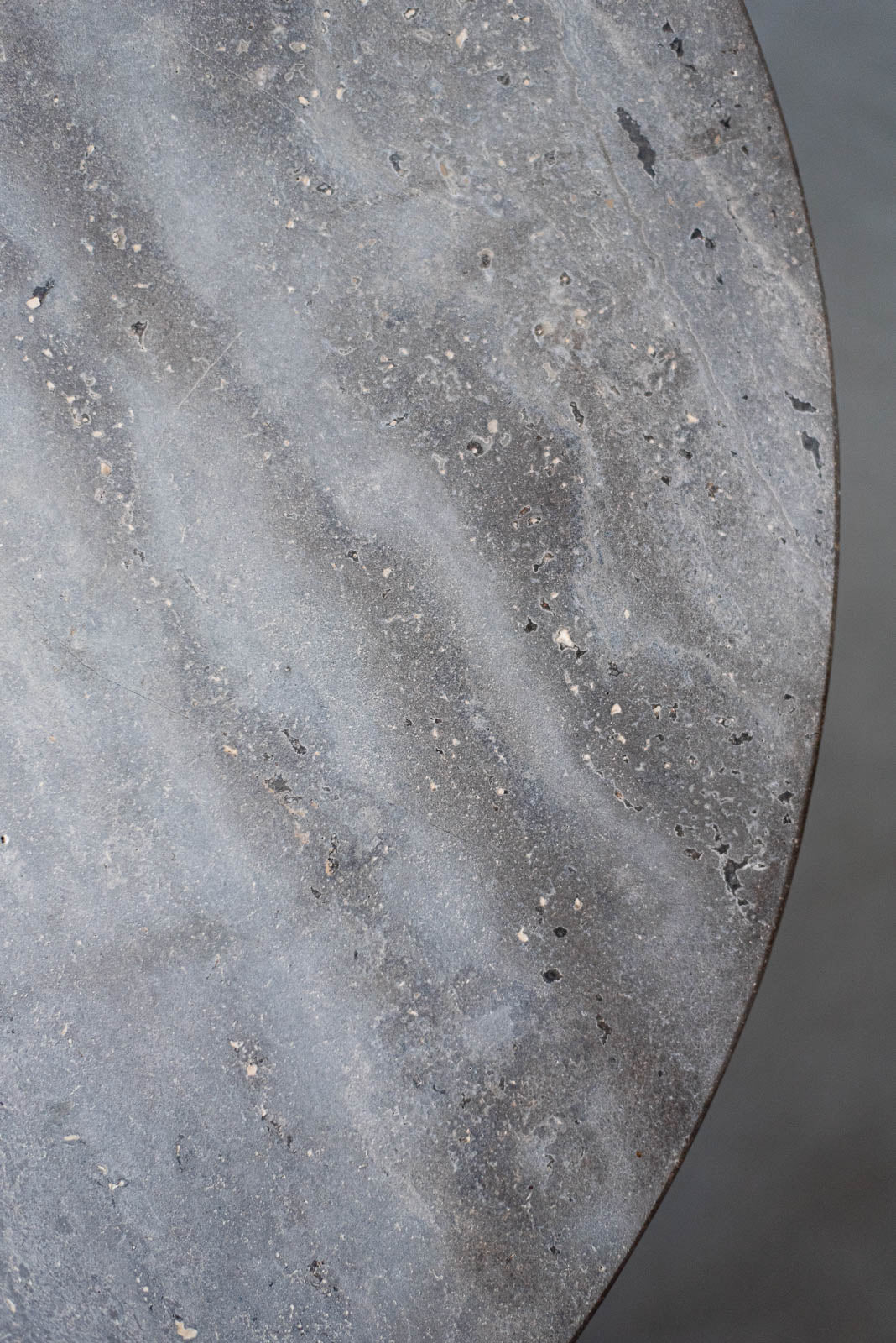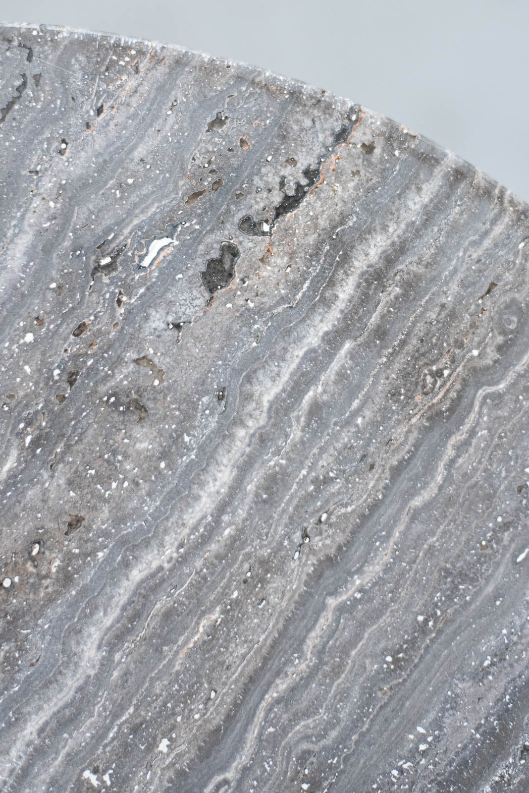 天板には、グレーを基調とした天然トラバーチンを採用。流れるような模様と深みのある色合いが、確かな存在感を放ちます。天然石ならではの個体差は、一点ごとに異なる表情を楽しませてくれます。