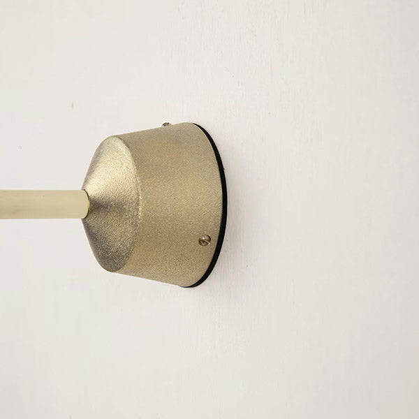 インテリアで重宝するのは、ソファサイドに淡い光を添えてリビング全体を上質な寛ぎの空間へ昇華させたり、廊下・ベッドサイドのナイトライトとして“ 点の光” を加えたい場面。真鍮の鋳肌が光をやわらかく反射し、壁面に深い陰影と温かみをもたらします。時とともに真鍮の表情が琥珀色へと熟成し、空間の変化を静かに映し出す一灯です。