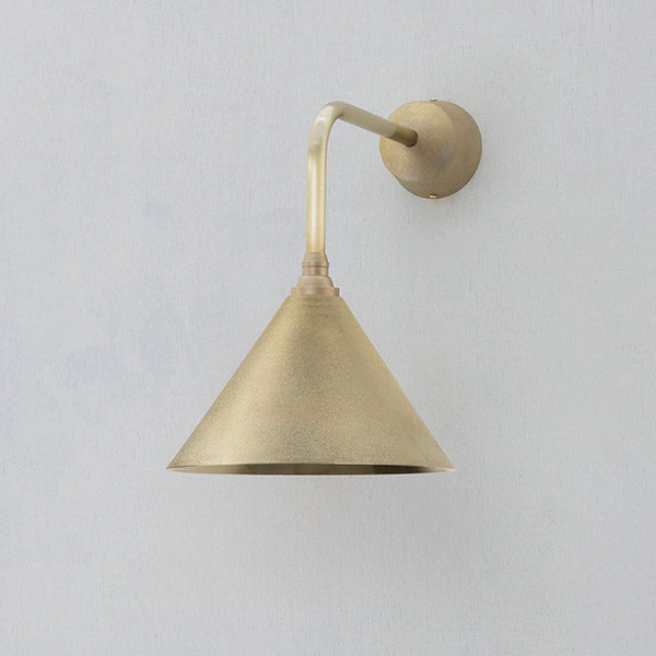 真鍮鋳物のL 字ブラケットに、FUTAGAMI ペンダントシリーズのシェード(円錐・半球など)を自由に組み合わせられる壁付けランプです。防滴構造のため、雨がかかるエントランスやテラスでも使用可能。屋内外を同一意匠で統一できることから、住宅はもちろん、ホテルやレストランでも幅広く採用いただけます。