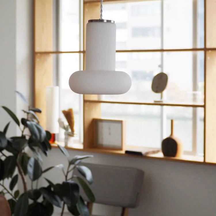 フロスト加工を施したホワイトのシェードはさらりとした手触り。清潔感があり、北欧テイストにもマッチします。
