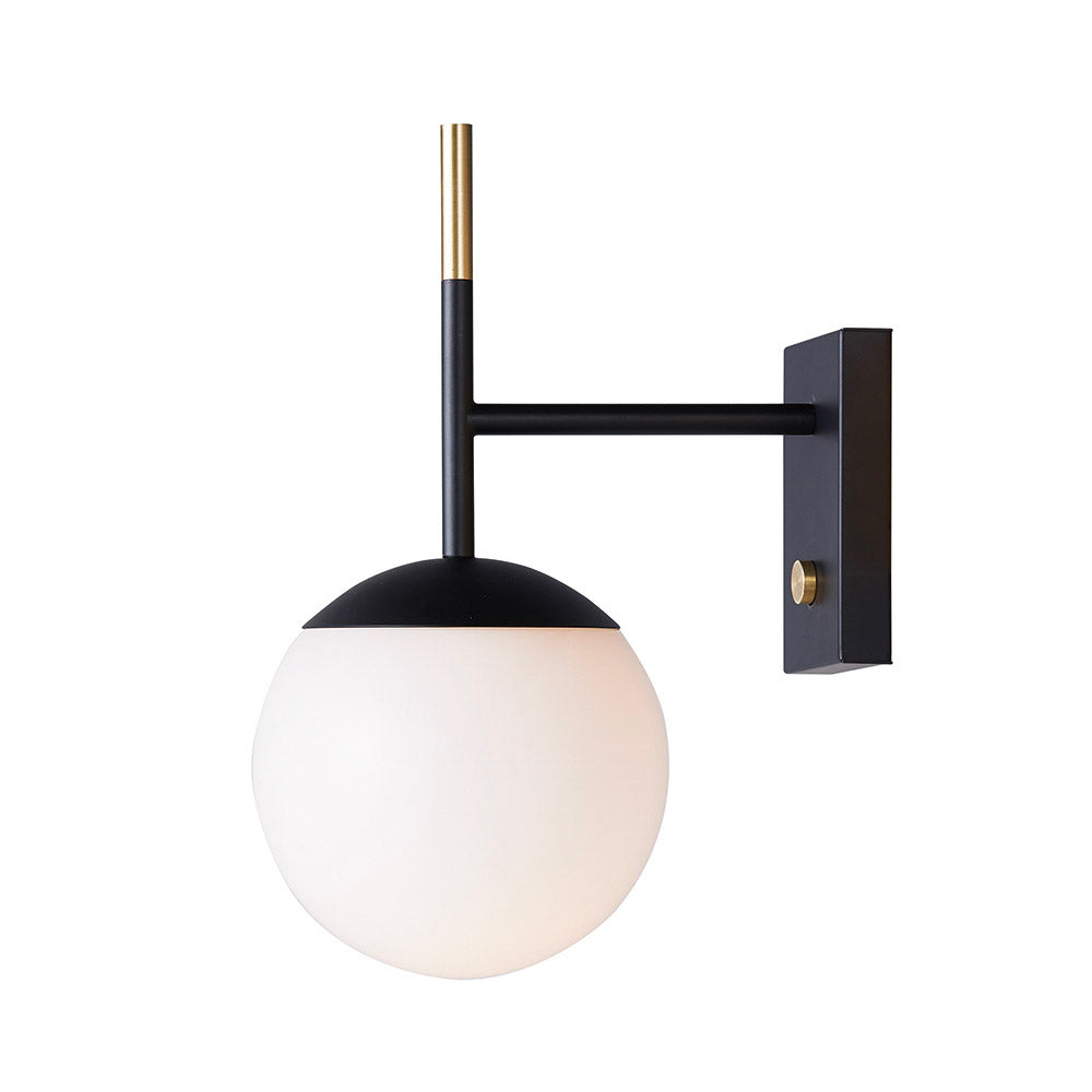 球状のガラスグローブが放つ柔らかなしっとりとした光と、真鍮素材がマッチングした小ぶりなブラケットライト